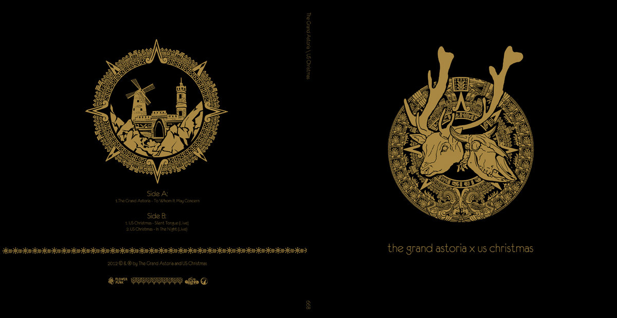 "This is a split between THE GRAND ASTORIA and US CHRISTMAS. Again I have no idea how this fits in the discography and I don’t really care either. This does appear to be a bit more somber and controlled than other stuff I have heard by the band. but it also goers to show the many sides of this amazing band. The band does one track on this split but the track is a 19 minutes piece. I honestly don’t know where the band comes from musically or even where they are going but as long as they knock out songs like this doomy psychedelic influenced one I don’t care too much. I don’t know why I came to think of Cathedral when I listened to this but hey, one great band leads the mind to another great band. US CHRISTMAS might have a strange name and are usually to be found on the Neurot roster but that is nothing I hold against them. Quite on the contrary actually. I love the band Swans. This in some way made me think back to that band and that sonic excellence that band produced. Musically this is some sort of psychedelic doom rock. Judging from these two live tracks they do a fine job at it too. I might have been totally oblivious to the existence of US CHRISTMAS prior to this but now I gotta track down more stuff from them."